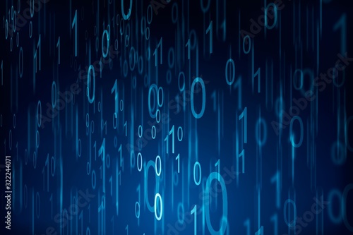 Binary computer code on blue background. 01 numbers pattern. Data and technology texture. 3D Rendering