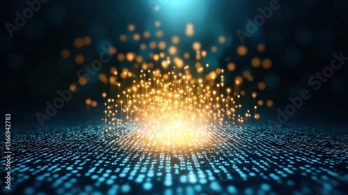 Binary Concept of quantum computing with binary code merging into quantum bits.