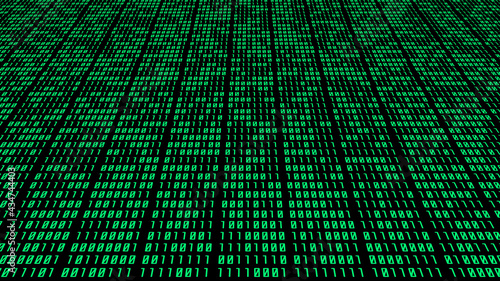 Binary Number Matrix Side Tracking Camera Perspective on Black Background
