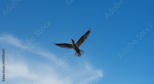 Bird soaring through sky