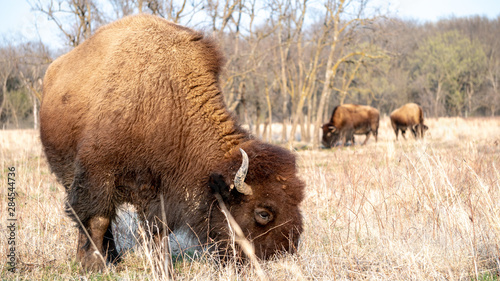 Bison / Buffalo side Grazing in Field