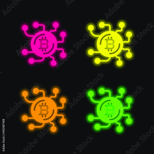Bitcoin four color glowing neon vector icon