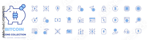 Bitcoin icons collection. Line Duotone style, editable stroke. savings, pendrive, pay per click, blockchain, locker, data encryption, currencies, crypto, send