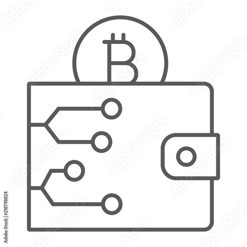 Bitcoin wallet thin line icon, money and finance, cash sign, vector graphics, a linear pattern on a white background, eps 10.