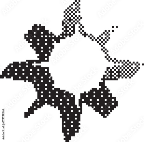 Bitmap pattern star shape. Halftone gradient element. Y2k graphic abstract icon. Dither noisy grunge texture.