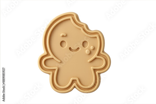 Bitten gingerbread man cookie smiling with transparent background