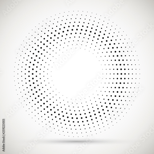 Black abstract vector circle frame halftone dots logo emblem design element. Rounded border icon. Isolated halftone circle dots vector texture.