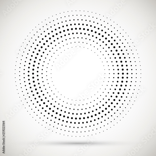 Black abstract vector circle frame halftone dots logo emblem design element. Rounded border icon. Isolated halftone circle dots vector texture.