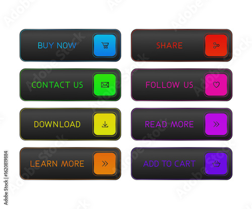 Black and colorful CTA button set.