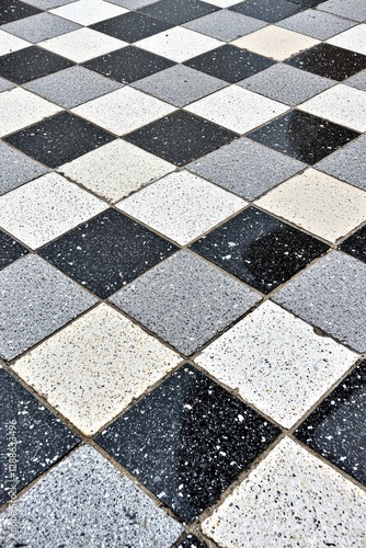 Black and White Checkerboard Pattern on Ground with Textured Surface for Creative Design and Background Use