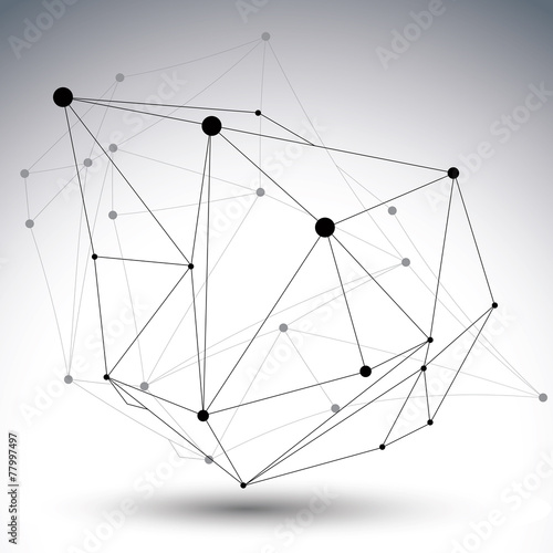 Black and white distorted 3D abstract object with lines and dots