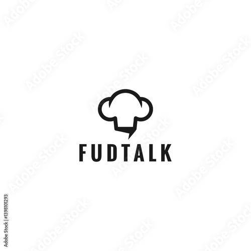 Black and White Food Talk Logo: Chef Hat Cloud and Text