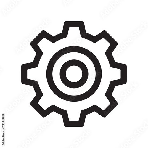 Black and White Gear Icon, Simple Design, Isolated Element