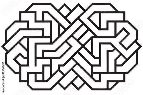 Black and White Interlocking Geometric Pattern on White Background abstract