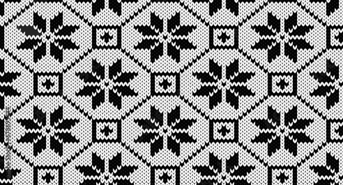 Black and white knitted pattern, Festive Sweater Design. Seamless Knitted Pattern
