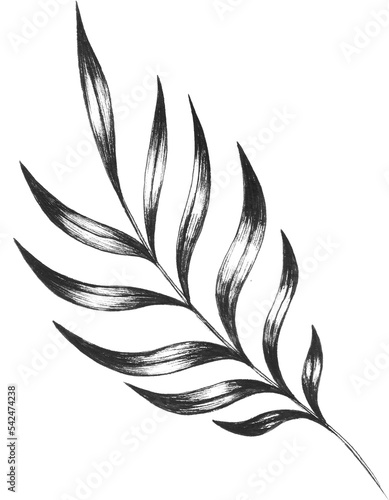Black and white png graphics, tropical leaf, palm leaf