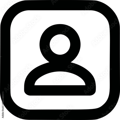 Black and white user icon with a rounded square frame. Vector illustration