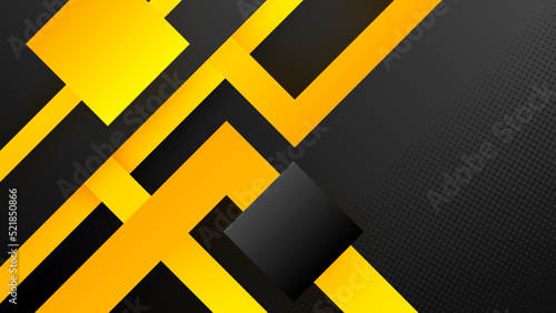 Black and yellow overlap background. Texture with dark metal pattern. Modern overlap dimension vector design. Futuristic perforated technology abstract background with yellow glowing lines