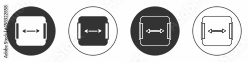 Black Area measurement icon isolated on white background. Circle button. Vector