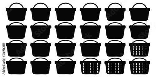 black basket silhouette vector collection set