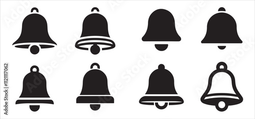 Black Bell Icons Set for Notification Design silhouette