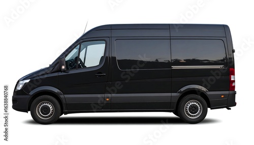 Black cargo van, side profile, white background