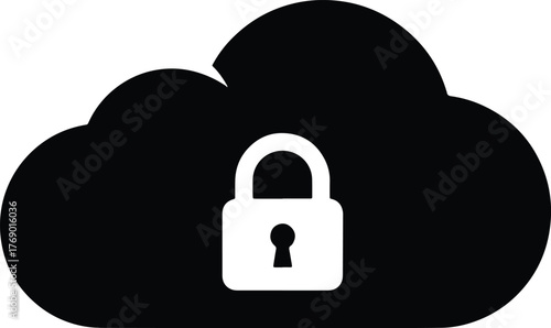 Black cloud icon with white padlock symbol on white background security data