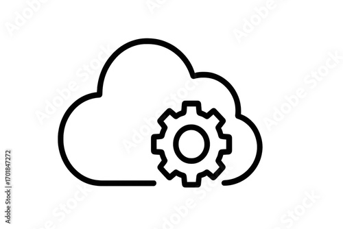 Black cloud with gear icon isolated on transparent background, outline style
