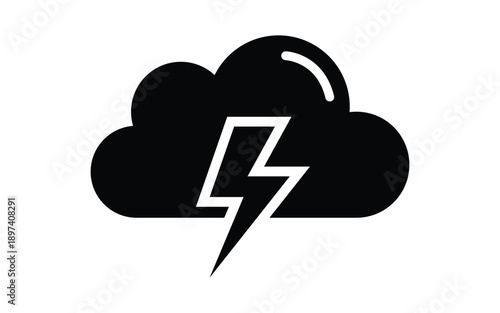 Black Cloud with Lightning Bolt Icon on White Background
