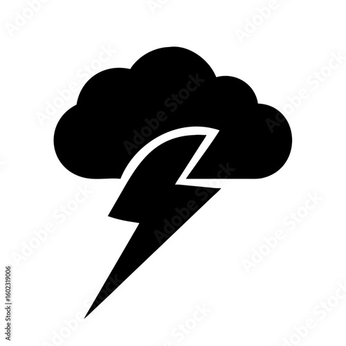 Black Cloud with Lightning Bolt Icon Symbolizing Storms and Bad Weather icon vector