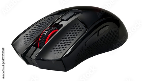Black computer mouse, angled view