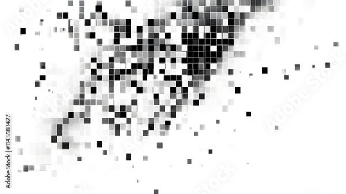 black digital pixel squares forming a geometric overlay, isolated on transparent