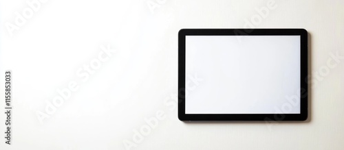 Black digital tablet on a white background with ample copyspace for text highlighting technology and modern communication devices.