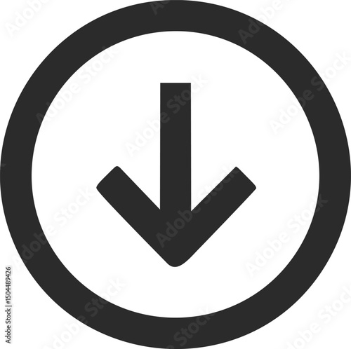 Black downward arrow inside a circular border, download symbol. Vector illustration