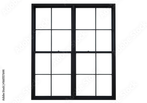 Black framed window with grid isolated on transparent background