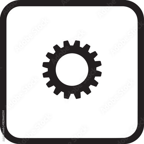 Black gear icon in a square frame, representing settings or mechanics.