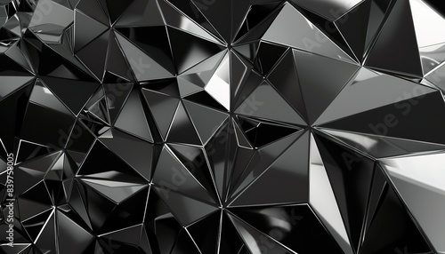 Black gray background with crystals, triangles 3d