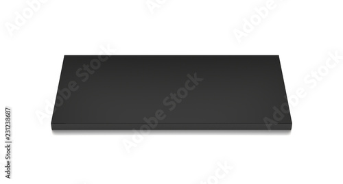 Black horizontal thin blank box from front top angle. 3D illustration isolated on white background.
