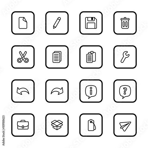 black line web icon set with rounded rectangle frame for web design, user interface (UI), infographic and mobile application (apps)