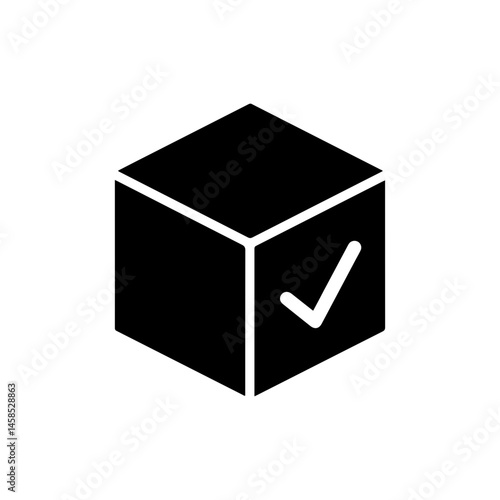 Black Minimal Icon of Cube with Checkmark on Side