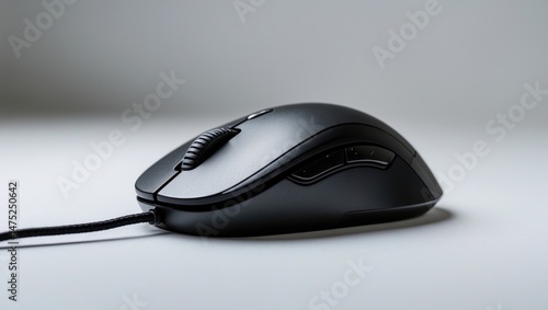 Black mouse for computers displayed on a white background.