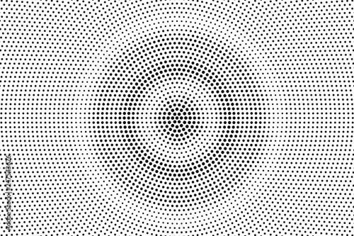 Black on white centered halftone texture. Circular dotwork gradient. Rough dotted vector background