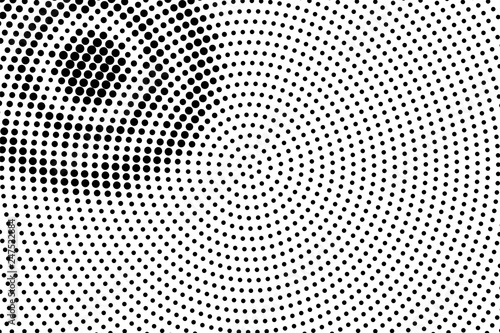 Black on white grunge halftone vector. Digital dotted texture. Dynamic dotwork gradient for vintage effect.