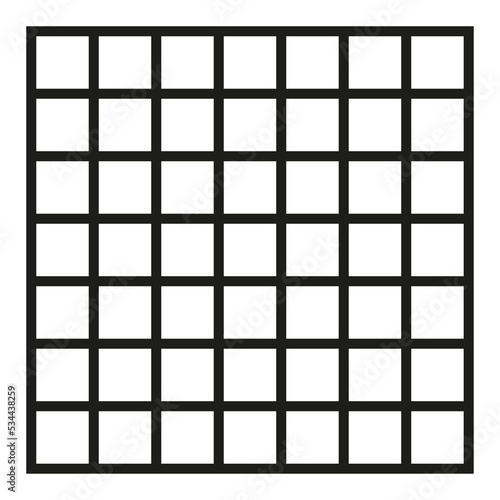 Black outlined square divided in forty nine, 49, parts. 7x7 grid. Isolated png illustration, transparent background. Asset for overlay, montage, collage, presentation. Business concept.