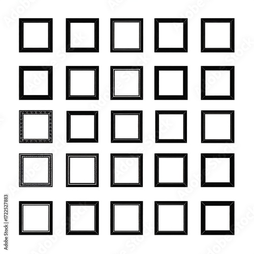 Black picture frames on white background