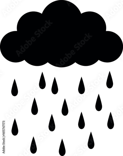 Black rain cloud icon with falling drops