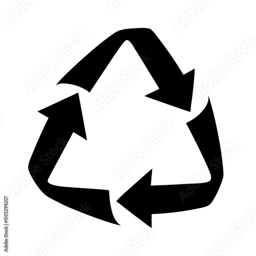 Black Recycling Symbol with Three Arrows, Simple black recycling symbol composed of three curved arrows forming a continuous loop on a white background.