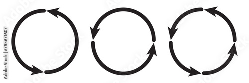 Black round arrows set, circle shapes. Vector illustration