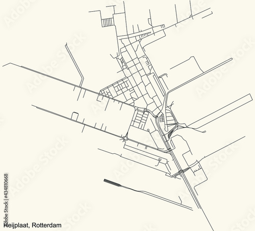 Black simple detailed street roads map on vintage beige background of the quarter Heijplaat neighbourhood of Rotterdam, Netherlands