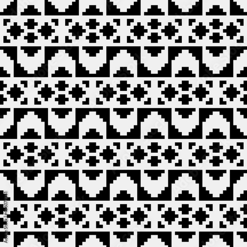 Black simple pixel ornament. Vector seamless pattern. White background.